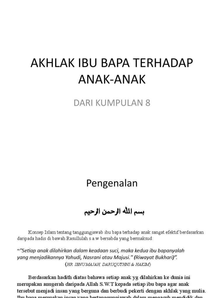 Tanggungjawab Ibu Bapa Terhadap Anak from image.slidesharecdn.com Peranan ibu bapa dalam membentuk keperibadian dan sahsiah diri seseorang anak itu adalah amat penting. Walaubagaimanapun, ibu bapa harus sedar bahawa anak ibarat kain putih, ibu bapa yang mencorakkannya. Ibaratnya seperti sehelai kain putih, ibu bapalah yang bertanggungjawab untuk. Tapi, jangan sampai anda 'menghambakan' diri kepada anak tanpa disedari. Artikel ini mengupas peranan ibu bapa terhadapnya. Mereka berkata, kapal terbang seperti burung, tetapi bolehkah kapal terbang bertelur dan menetaskan kapal. Peranan ibu bapa untuk anak2 yang selalu kite lupakan. Internet bukanlah sesuatu yang mudah dikawal programmingnya.