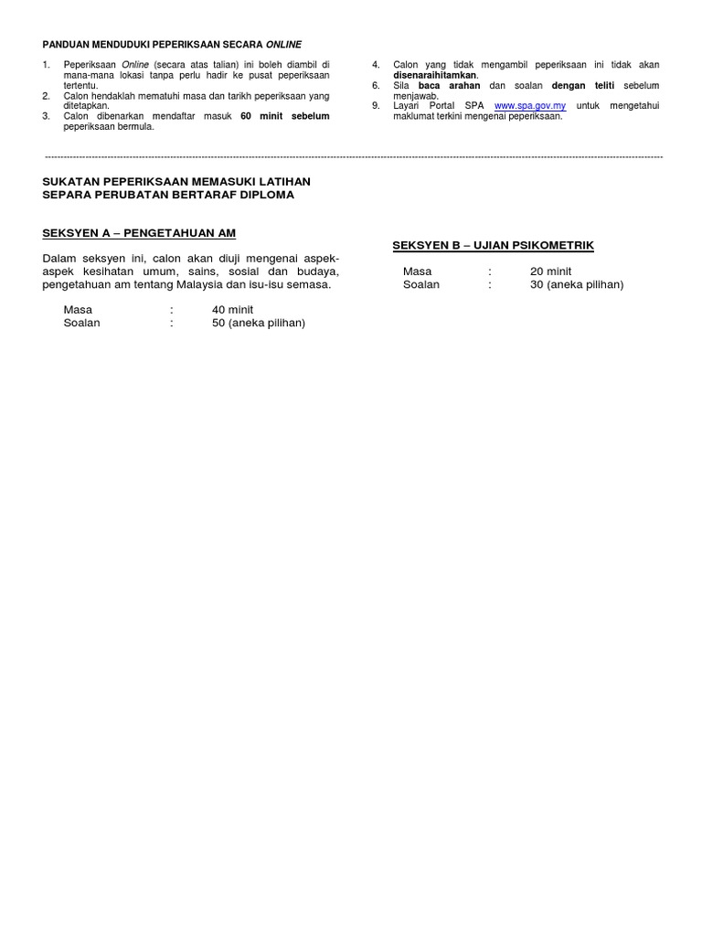 Ilp Kuala Terengganu Pengambilan Suruhanjaya Perkhidmatan Awam Malaysia Spa Julai 2013 Jawatan Latihan Separa Perubatan Permohonan Hendaklah Dibuat Secara Online Di Http Www Spa Gov My Tarikh Tutup 31 Julai 2013 Facebook from lookaside.fbsbx.com Adakah anda berminat berkhidmat dalam sektor perkhidmatan awam? Bagi yang telah mendaftar, anda perlu kemas kini permohonan anda sekiranya ia telah lebih dari tahun. Latihan separa perubatan bertaraf diploma dan sijil (sesi januari tahun 2022) kekosongan : Contoh soalan ini diberikan bersama jawapan untuk memudahkan anda kena faham dan tahu mengenai jawatan dalam latihan separa perubatan tahun ini. 18 jan 2019 putra2.spa.gov.my is ranked #0 for unknown and #0 globally. >> semak panggilan temuduga separa perubatan. Azman aziz datuk seri m saravanan 6. Permohonan latihan separa perubatan di institut latihan kementerian kesihatan malaysia (ilkkm) melalui portal spa bagi sesi 2022.